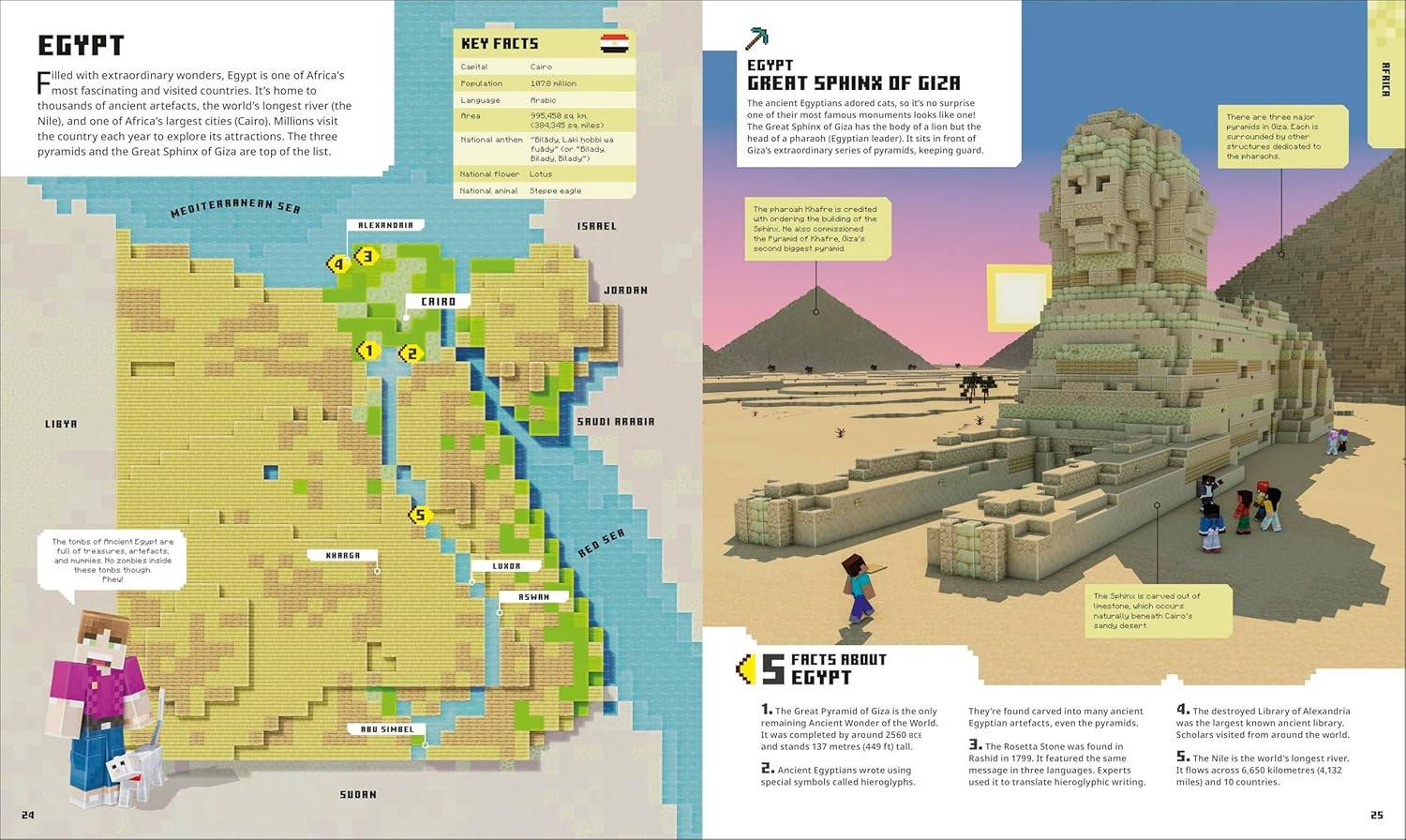 TRAVEL AROUND THE GLOBE FROM THE COMFORT OF HOME: Kids will learn real-world facts about history and geography as they marvel at the incredible Minecraft creations on every page.